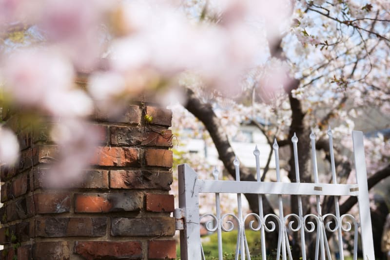 約100本の桜が咲く異人館街のうち、心惹かれるのが「風見鶏の館」を飾る桜。例年、3月下旬から4月上旬にかけて、ソメイヨシノが赤レンガ造りの館の周辺をピンク色に染め上げます。夕暮れ時の館の2階からは、うっとりするような桜越しの街並みを見渡せますよ。