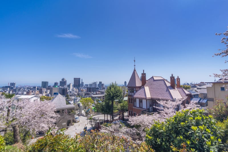 神戸ならではの桜の名所を探しているなら、異国情緒たっぷりの『神戸北野異人館街』で決まり。海を見降ろす高台に、かつて外国人居留地として発展した約30棟の洋館が立ち並んでいます。ほとんどの洋館が明治から大正期のもので、タイムスリップした感覚に…!