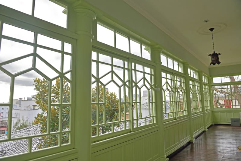 1903年に建てられた「旧ハンター住宅」も、異人館街屈指の桜名所のひとつです。とくに見事なのが館の裏手にある枝垂桜。萌黄の外観に映えるピンク色の桜が美しいので、洋館と桜の融合を堪能してみて。