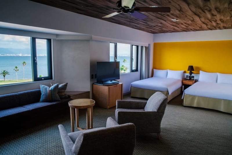 ホテルは、全室オーシャンビューでメキシコ近代建築の巨匠ルイス・バラガンをイメージさせるような色鮮やかなインテリアが魅力的。まるで海外にいるような雰囲気が味わえますよ。