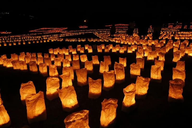 海の中海道浜公園でプロポーズをするなら、夜の時間帯がおすすめ。例年、12月中旬以降の週末におこなわれる「うみなかキャンドルナイト」は、1万本ものキャンドルで地上絵が描かれるイベントです。感動で包まれること間違いなし!