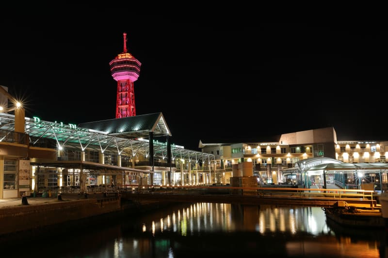 食事の後は、展望デッキに移動しベイエリアの夜景を眺めてみては? 博多ポートタワーや停泊した船が見え、ロマンチックなムードになること間違いなし。潮風が気持ちいい穴場スポットです。