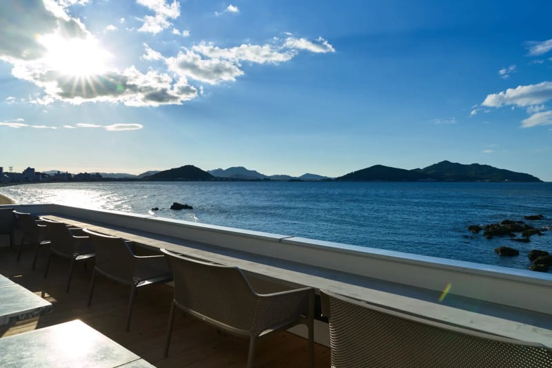 市内から車で約20分の場所に位置する『OCEAN HOUSE』。どの席からも海が見渡せるガラス張りの大きな窓が特徴的で、時間帯によって様々な景色が楽しめます。開放的なシーサイドハウスは「CALIFORNIA B.B.Q BEACH」の敷地内にあり、新鮮な海の幸や釜焼きピッツァなど本格的なランチやディナーを提供しています。