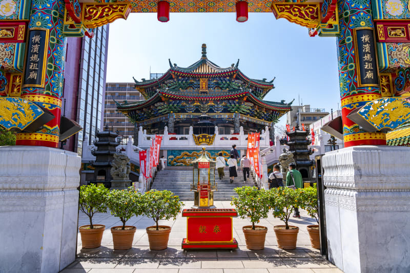 「媽祖廟」は、中国や台湾の人々にとって守護神とされ、航海や商業の神として信仰されている天上聖母をお祀りする廟。正式な名称は「横浜大天后宮」。安産の神様の臨水夫人や子授けの神様である註生娘娘(ちゅうせいにゃんにゃん)、縁結びの神様の月下老人なども祀られていて、その利益を授かろうと多くの人が訪れる人気観光スポットです。