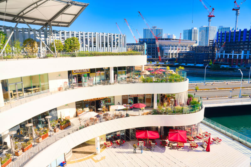 横浜のランドマークのひとつ『横浜ベイクォーター』は、海を一望できるショッピングモール。客船をモチーフにしたユニークな外観が特徴です。開放的な吹き抜け空間になっており、潮風を感じながらゆったりとショッピングを楽しめます。