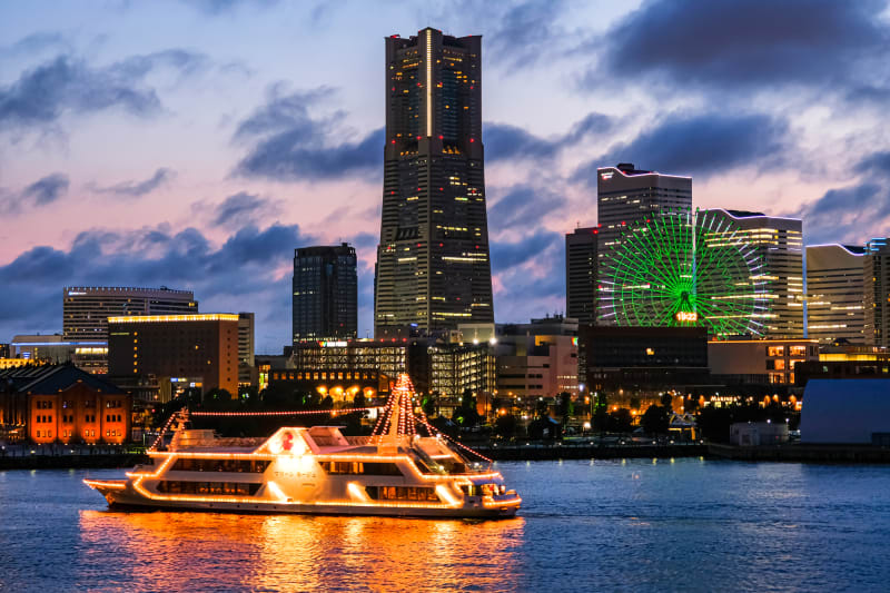 同じく「シーバス」乗り場から発着している「マリーンルージュ」は、誕生日や記念日の食事におすすめ♪ 海上からの横浜の景色と共にシェフの選りすぐりのお料理を堪能できます。ランチ、アフタヌーン、トワイライト、ディナーと時間やシチュエーションに合わせてクルージングを選べますよ。