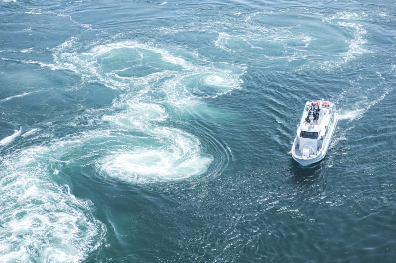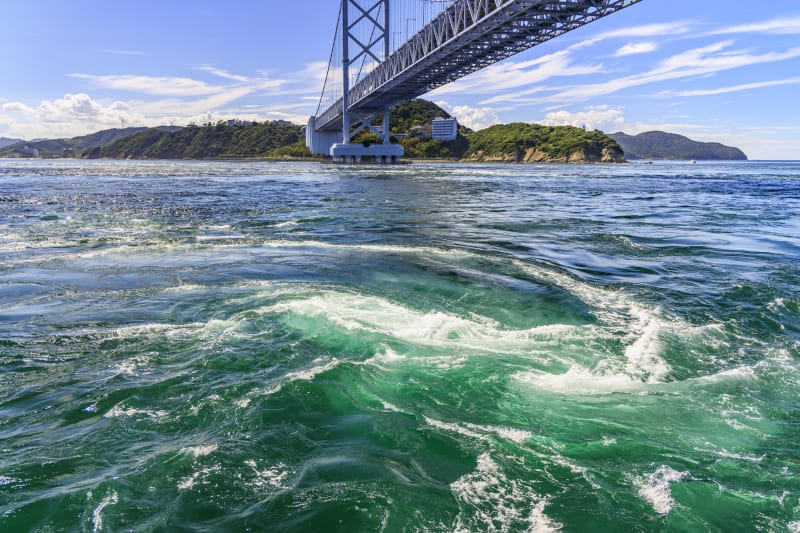 世界最大のうずしおを体感できる『うずしおクルーズ』は大迫力のスポット。鳴門海峡はイタリア、カナダと並ぶ世界最大潮流のひとつで、流れが速いときには時速30kmで渦を巻きます。迫力満点の約60分間は、きっと忘れられない感動体験になること間違いなし。