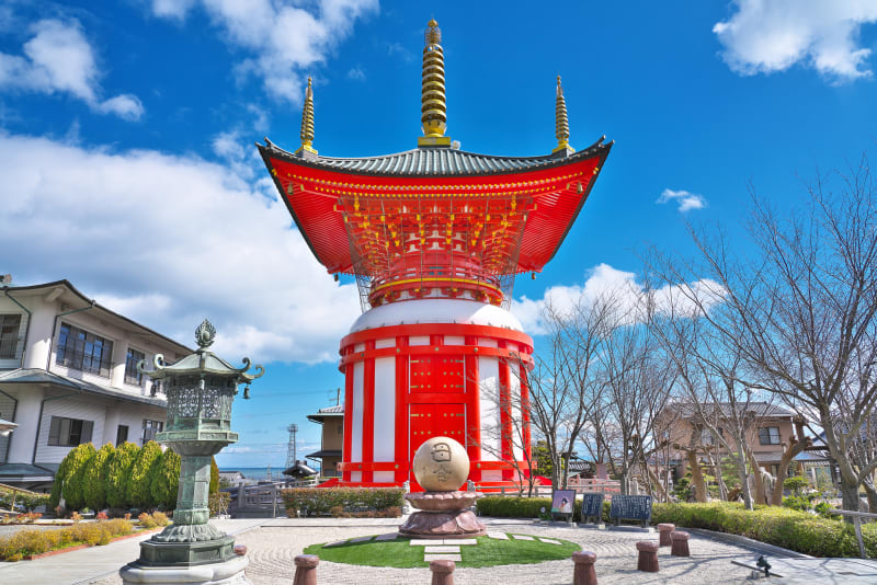 幸福や豊かさを求めているなら、淡路島七福神霊場の総本院『八浄寺』がおすすめ。七福神のなかで、福の神と呼ばれる大黒天をお祀りするお寺です。本尊は、日本一の大きい木造の大黒天像。高さ2m以上を誇る大迫力の姿ですが、ほんのり笑ったお顔がやさしげ♪