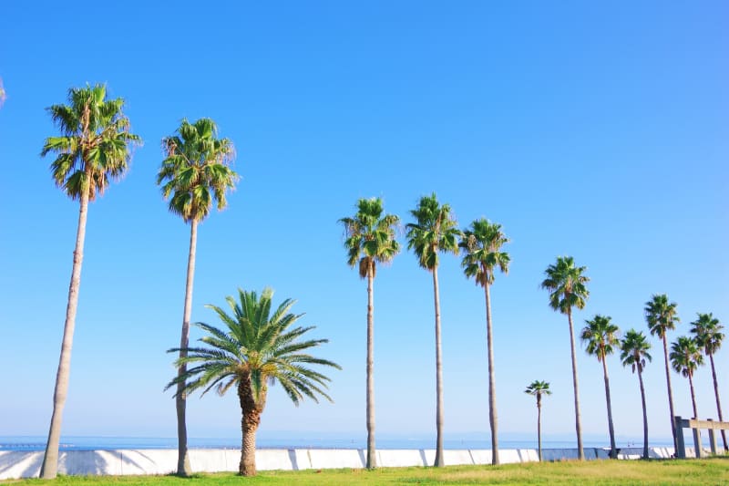 浦県民サンビーチにはヤシの木も植えられ、リゾートな雰囲気たっぷり。夕方には美しいサンセットビューが広がるので、カップルにも人気のスポットです。あえて夏を外していくと人が比較的少ないので、優雅なひと時を過ごせますよ。