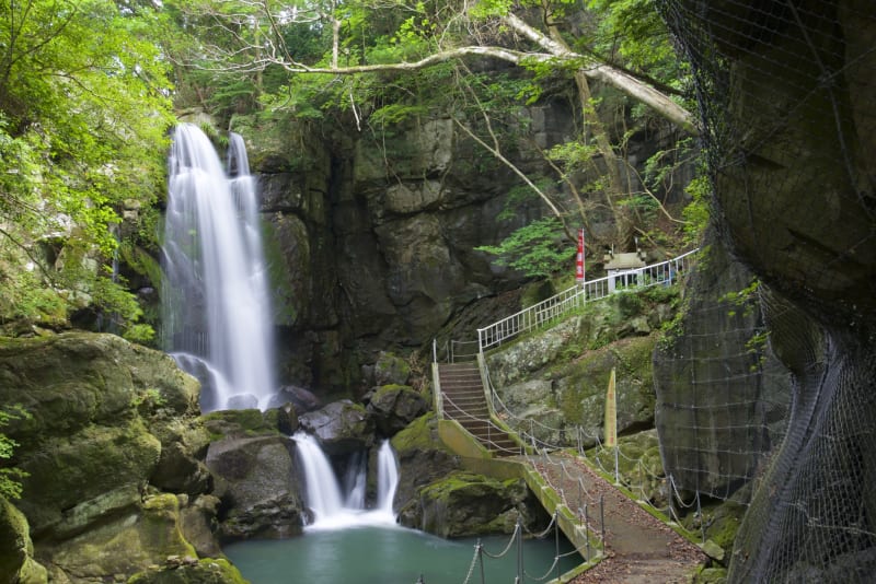 高さ14.5mを誇る淡路島随一の滝で、マイナスイオンを浴びられるパワースポットとして知られています。豊かな水量と迫力ある岩山を打つ音が魅力!