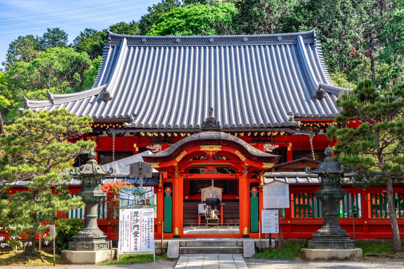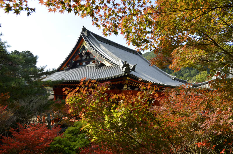 紅葉に囲まれた朱色の本殿や背の高い木々が赤く染まる姿は、ぜひ写真におさめたいところ! 京都市内から離れているため、人が少なくゆっくりと見学できるのも魅力のひとつです。静かでしっとりとした雰囲気のなか紅葉を楽しめるSNS映えする絶景スポットで、圧巻の美しさを写真におさめてみてはいかがでしょうか?