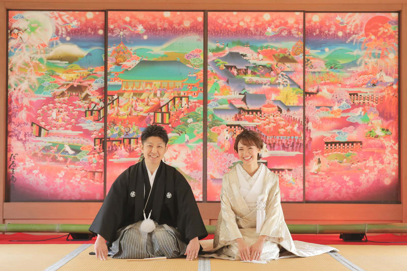 さらに、境内には鮮やかな薄紅色を基調とした襖絵「極彩色梅匂小町絵図」が飾られ、そちらもフォトスポットとして人気。小野小町の一生を描いた華やかな色合いが魅力です。