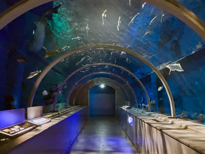 高さ8mの巨大タワー水槽では、色鮮やかで珍しい南の海の魚も泳ぎ、迫力満点。ほかにも、頭上を回遊するサメも見られるアクアトンネルや光と音楽の演出が綺麗なクラゲ水槽など、見どころ満載です。