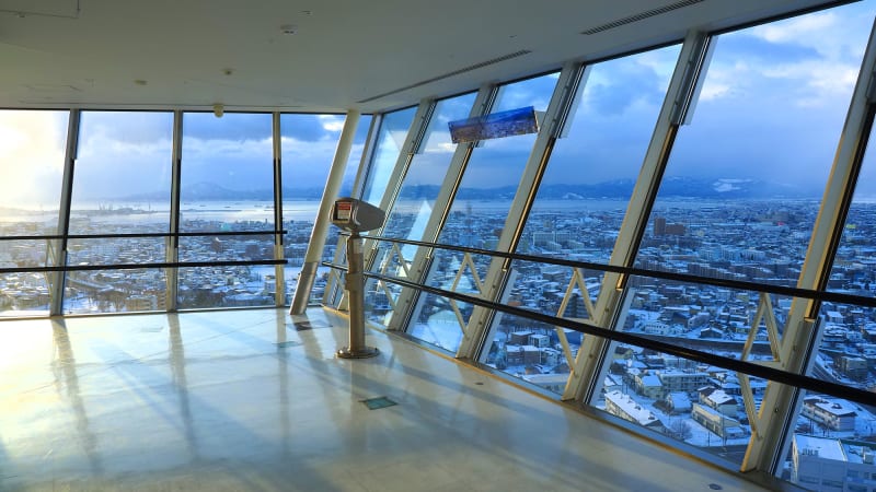 きれいな星の形をした城郭は、107メートル上空の「五稜郭タワー」から鑑賞できます。展望台は地上90メートルにあり、星形の五稜郭に加え函館山、津軽海峡、函館湾など360度の眺望が圧巻!