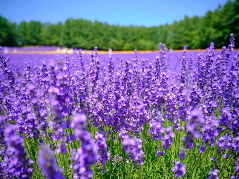 「ファーム富田」では代表的なラベンダーも長期間見られるのがポイント。例年、早咲きのラベンダーが咲き始める6月下旬ごろから見ごろが始まり、満開になるのは7月中旬から7月下旬です。