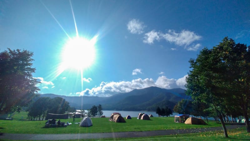 かなやま湖は、1年を通してアクティビティが充実! 夏はカナディアンカヌーやオートキャンプ、コテージでの宿泊がおすすめ。冬は、暖房の効いたテントの中であたたかく楽しめるワカサギ釣りが人気ですよ。釣り竿など必要なものはすべて揃っているから手ぶらでも安心。釣ったワカサギはその場で唐揚げにしていただけます。