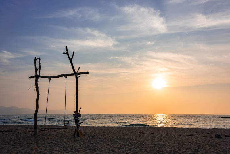 また、夕日ヶ浦はその名の通り夕日の名所としても知られています。海に沈みゆく黄金色の太陽は、まさにここでしか見られない絶景。浜辺には散策路やベンチが整備されているため、夕日が沈みゆく景色をゆっくりと眺められますよ。