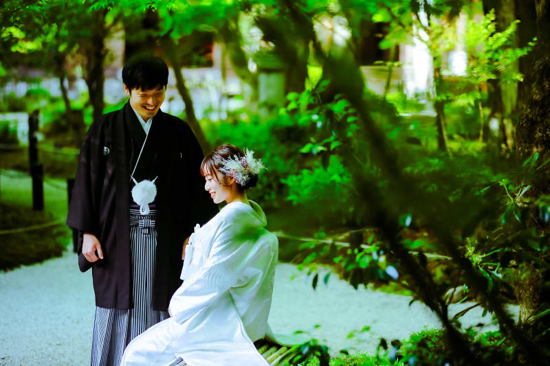 庭一面に広がる壮大な敷紅葉が有名ですが、夏の新緑・深緑の時期にはもみじや苔が青く染まり神聖な空気に包まれます。