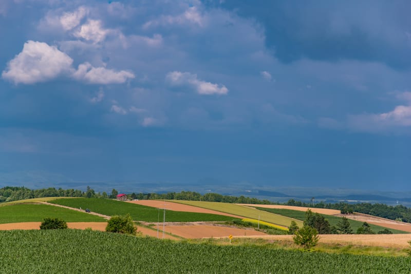 「パッチワークの路」は、区画ごとに米・小麦・大麦・じゃがいもなどの作物が植えられています。区画によって畑の色合いが変わり、布を繋いだパッチワークのように見える暖かな絶景。6月下旬から10月いっぱいに見ごろを迎えます。