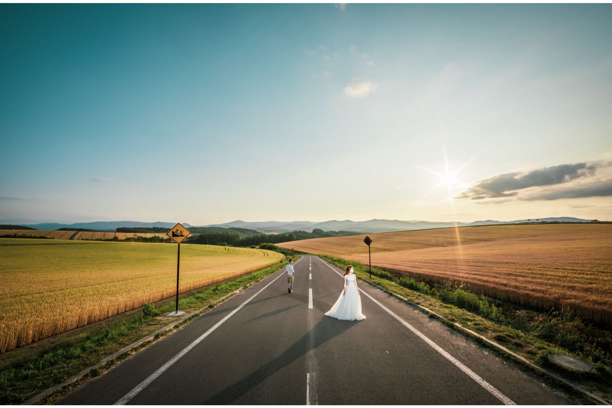 旭山動物園でランチも食べておなかいっぱいになったら、旭川から車で30分ほどの美瑛・富良野方面へ。北海道の1本道を走り抜ければ、気持ちの良いドライブを楽しめますよ。