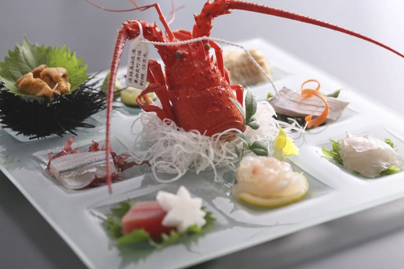 ホテルニューアワジのディナーは、淡路島3年とらふぐやサクラマス、淡路牛、伊勢海老など淡路島の食材をふんだんに使っていて豪華絢爛。季節によってさまざまなコースがあるので、ぜひそのときの旬の食材を味わってみて。