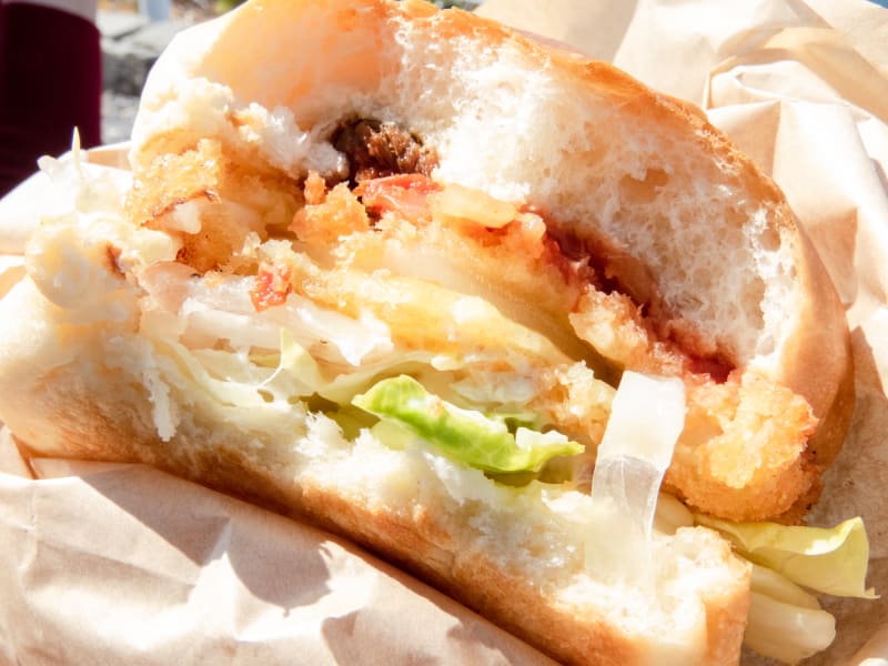 あわじ島バーガーの魅力はやはり玉ねぎ。ハンバーガーに挟まれた新鮮で甘味たっぷりの玉ねぎは、お肉や野菜との相性も抜群。こちら『道の駅うずし㏌うずまちテラス』に訪れる際にはぜひ食べていただきたいグルメです。