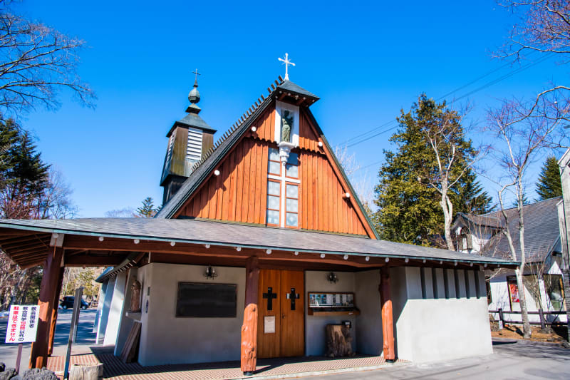 賑やかな商店街を楽しんだら、歩いて『軽井沢聖パウロカトリック教会』へ向かいましょう。軽井沢は明治時代に外国人の避暑地として栄えたことから、たくさんの教会が点在しています。