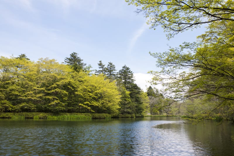軽井沢駅に到着したら、レンタカーを借りて『雲場池(くもばいけ)』へ。別名「スワンレイク」とも呼ばれる雲場池は、春の新緑から冬の雪景色まで1年を通して豊かな自然が楽しめる景勝地です。