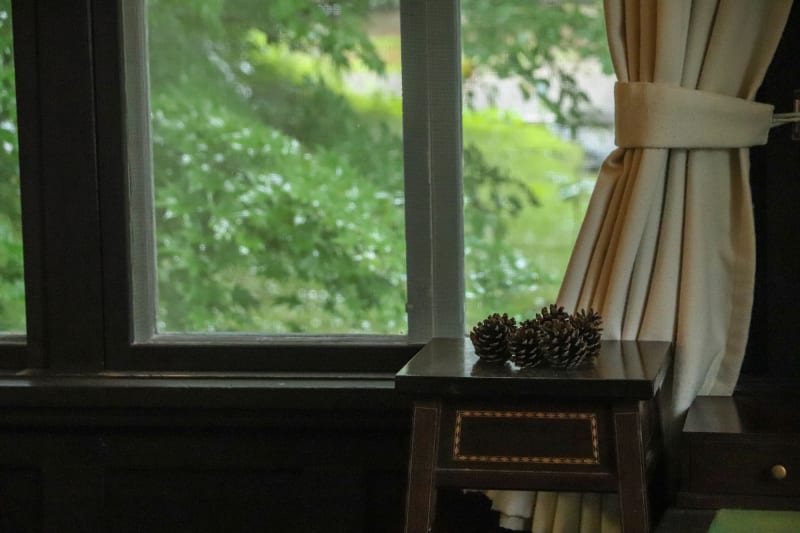 朝食を食べて出かける用意ができたら、軽井沢ホテル ロンギングハウスを出発!向かうのは車ですぐの場所にある『旧近衛文麿別荘』。