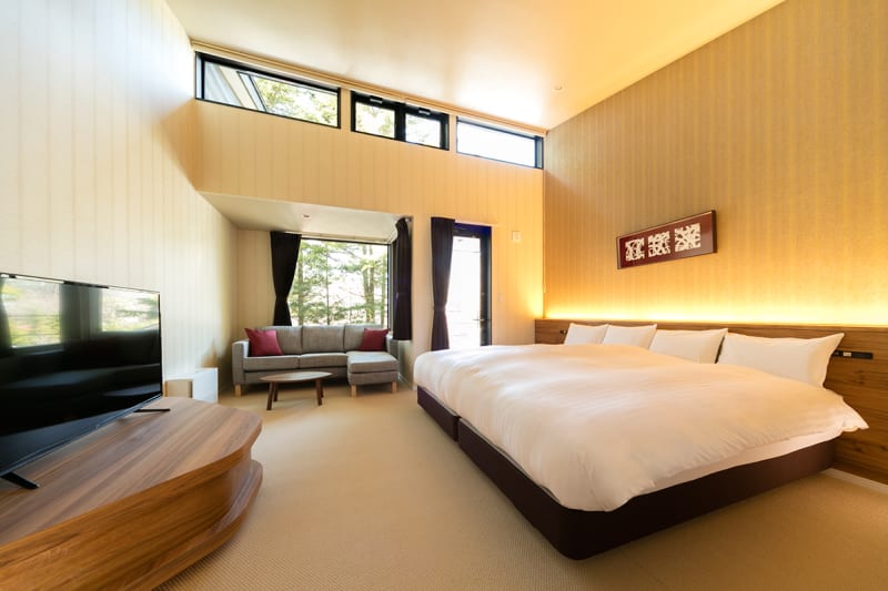 お部屋は洋室・和洋室・メゾネットなど多彩な客室タイプがあり、利用シーンや予算に合わせて最適なプランが選べます。今回は、テラスがある新館フォレストの洋室をチョイス。