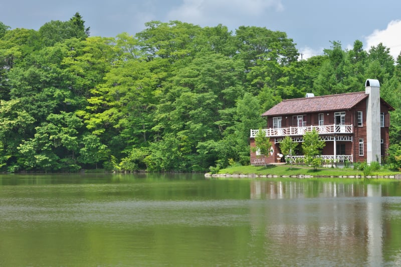 塩沢湖を囲むようにして広がる『軽井沢タリアセン』は、歴史的建築物のほか、レジャー施設やショップがそろうリゾート施設。