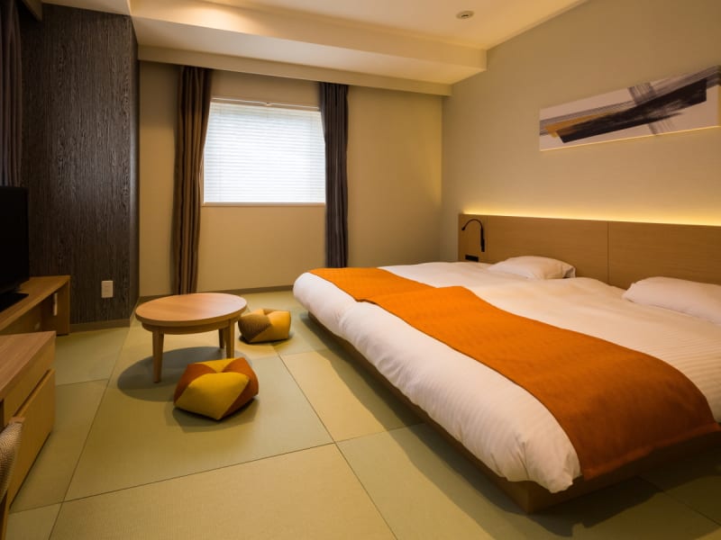畳敷きのお部屋では靴を脱いでリラックスでき、大きなベッドも2台備え付けられているので、広々とお部屋での時間を過ごせます。