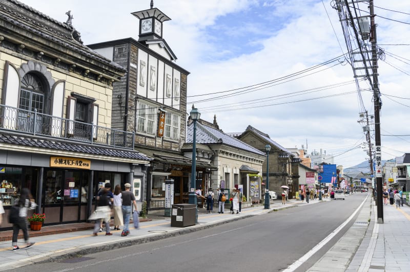 運河クルーズを楽しんだあとは、北一ヴェネツィア美術館のある堺町通り商店街や倉庫街に戻り散策。ガラス工芸のほかに、オルゴール店やおいしいスイーツショップ、人気洋菓子店『ルタオ本店』、海産物店、おしゃれなカフェなどが軒を連ねています。