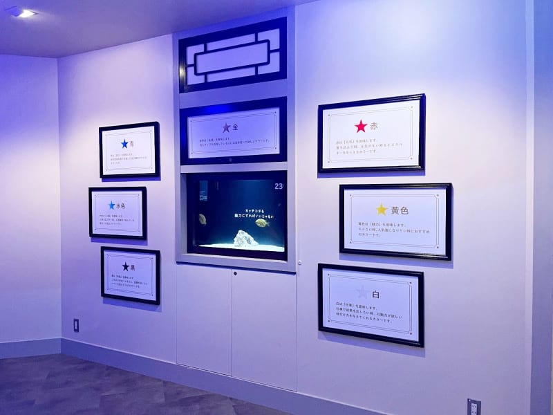 開運魚の水槽の中には可愛いお魚とともに癒やされるメッセージがひとつひとつ表示。88の水槽をすべて巡ることで、各種の運を引き寄せるといわれています。