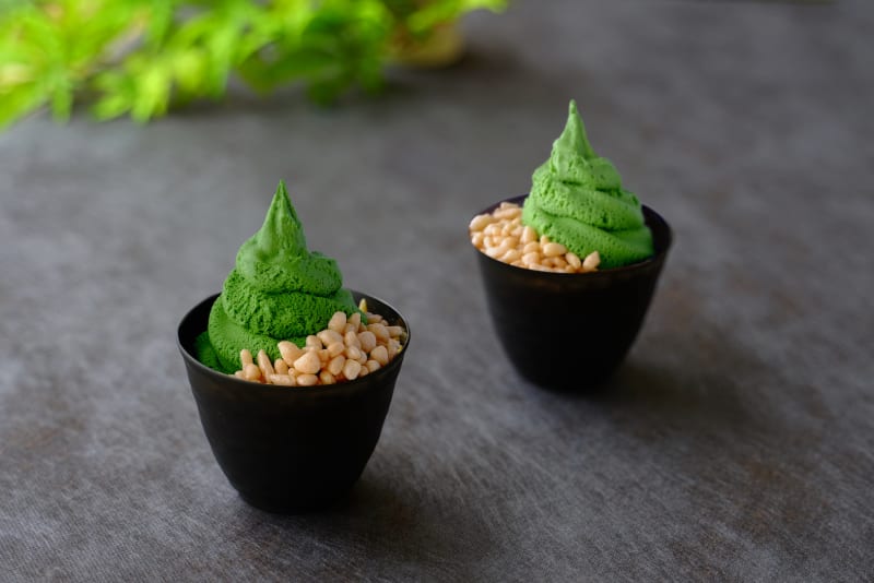 「良質な抹茶は苦くない」をコンセプトにしたこちらのお店。訪れたらぜひ味わってほしいのが、京都府産一番茶の石臼引き抹茶を3.5%使用し無香料・無着色で仕上げた「お濃茶ジェラート」。