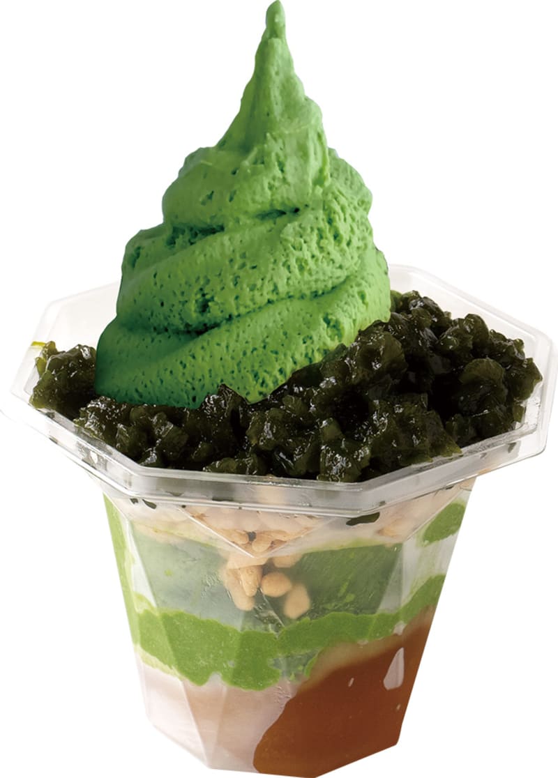 他にも、とろとろわらび餅・お濃茶ジェラート・もちもち食感わらび餅のクラッシュ・おこし種のトッピングでミニパフェ風に仕上げた「お濃茶わらびジェラート」も、いろいろな食感が味わえる大満足の一品です。