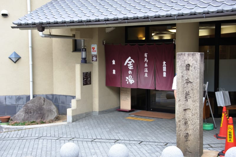 公衆浴場を改装した有馬温泉内でも特に有名な外湯。入り口にある石碑は江戸時代のもので、日本第一神霊泉と書かれています。