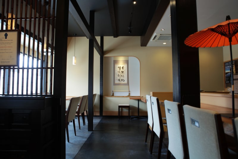 店内にある赤い番傘や掛け軸も、和を感じるコントラストになっており、着物でふらりと立ち寄るにはぴったりのお店。