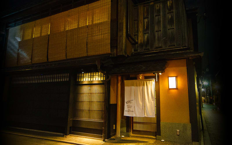 青柳小路にひっそりと佇む『イタリア料理 マメトラ』。町屋の外観に白いのれんが印象的な、京都らしさあふれる隠れ家イタリアンです。