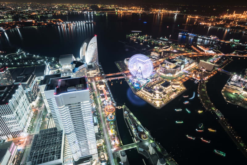 タワー69階に位置し、地上約273mの高さを誇る日本屈指の展望フロア。大きな窓からは迫力満点の横浜の街並みや、関東平野が一望できます。まるで宝石箱をひっくり返したようなきらびやかな夜景が望め、ロマンチックなひとときが過ごせますよ。