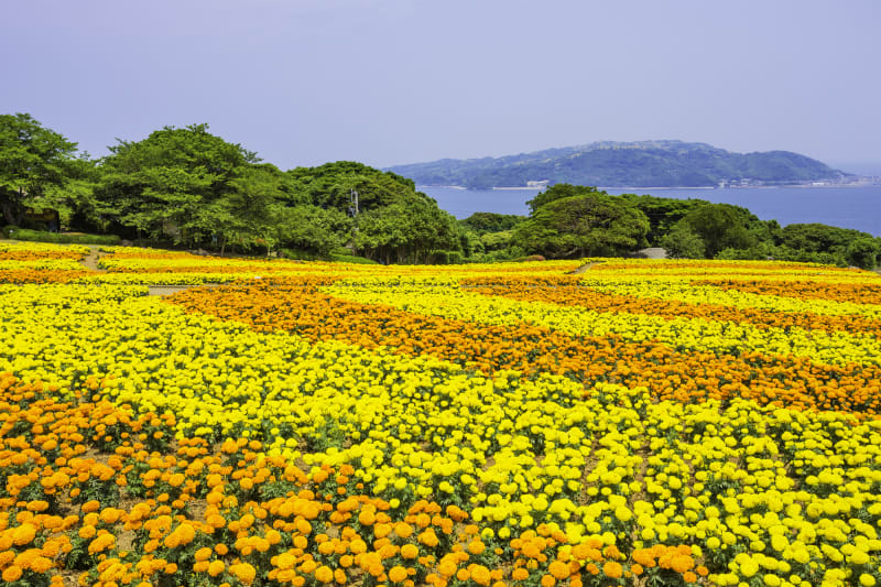 『のこのしまアイランドパーク』は、菜の花や桜、ひまわりなど1年中花が咲き誇る自然公園。キャンプ村や海水浴場、ロープスキーやミニ動物園など、大人から子どもまで幅広い世代に愛されている、能古島を代表する観光スポットです。