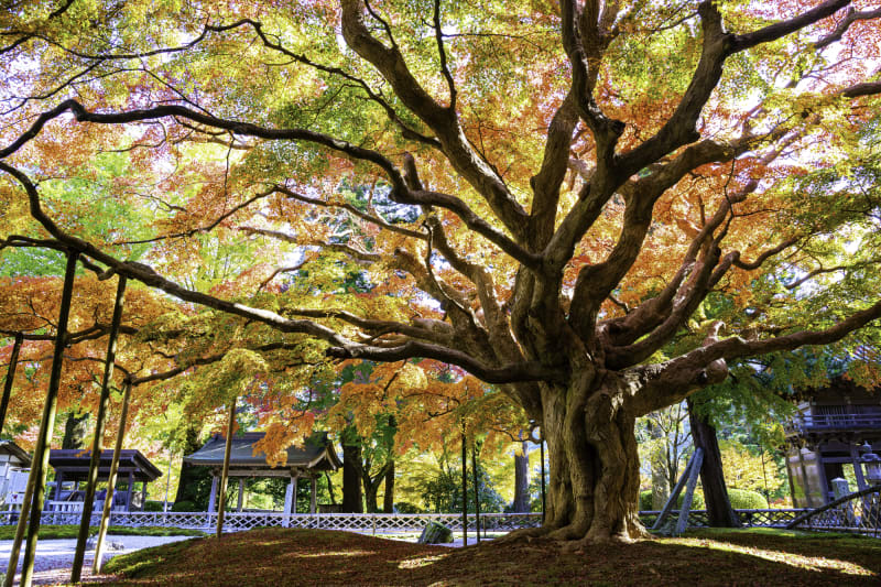 糸島市の山あいにある『雷山 千如寺大悲王院』は、742年(天平14年)に開山されたと伝えられている寺院。『大悲王院』は1752年(宝暦2年)に黒田継高公によって建てられた記録が残されています。毎年秋には境内にある樹齢約400年の大カエデが色づき、糸島だけではなく多方面から多くの参拝者が訪れる、紅葉の名所としても知られています。