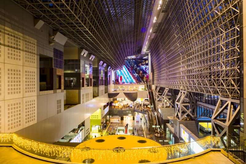 ちなみに京都駅の格子状のような独特なデザインは、平安京の都市の特徴である条坊制(碁盤の目)をコンセプトにしています。京都ならではのユニークな建築デザイン、細かいところにも注目してみて。