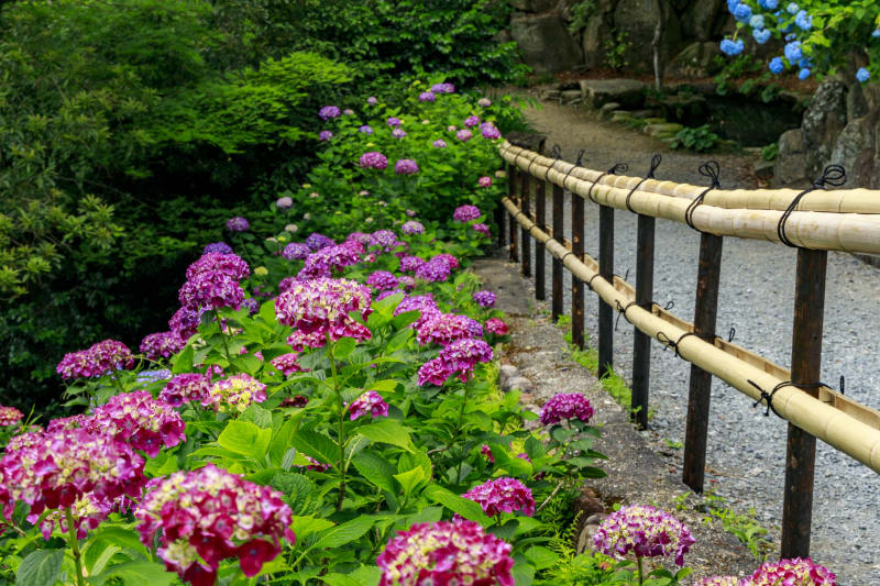 『丹州観音寺』は、720年に法道仙人によって開創された、高野山真言宗のお寺。紫陽花の数はなんと約100品種・10,000株を誇り、関西で最も歴史あるあじさい寺として親しまれています。