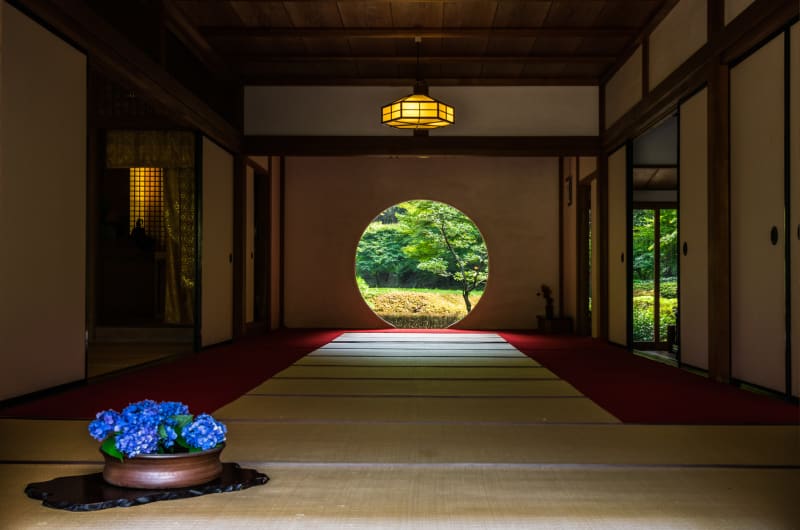 境内には北条時頼の墓や、上杉憲方の墓とされる「明月院やぐら」があり、鎌倉の歴史を肌で感じることも。『悟りの窓』も有名で、丸い窓からはまるで切り取った絵画のような景色が広がっています。