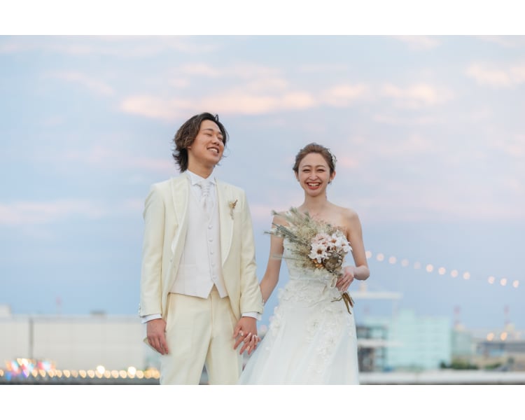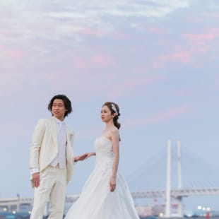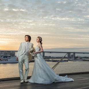 みなとみらい夜景を背景に、抱っこショットでロマンチックな撮影ができました!