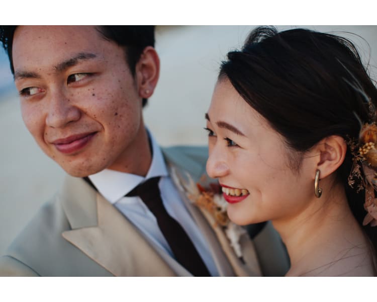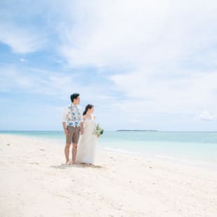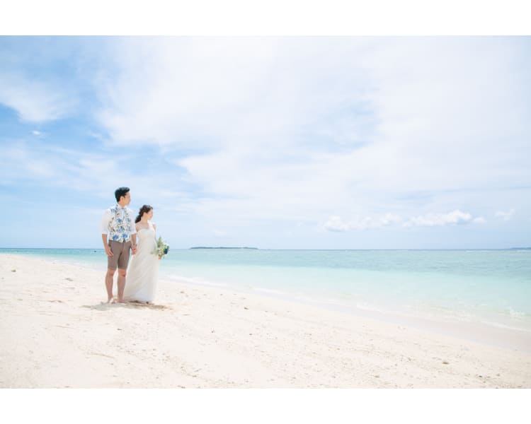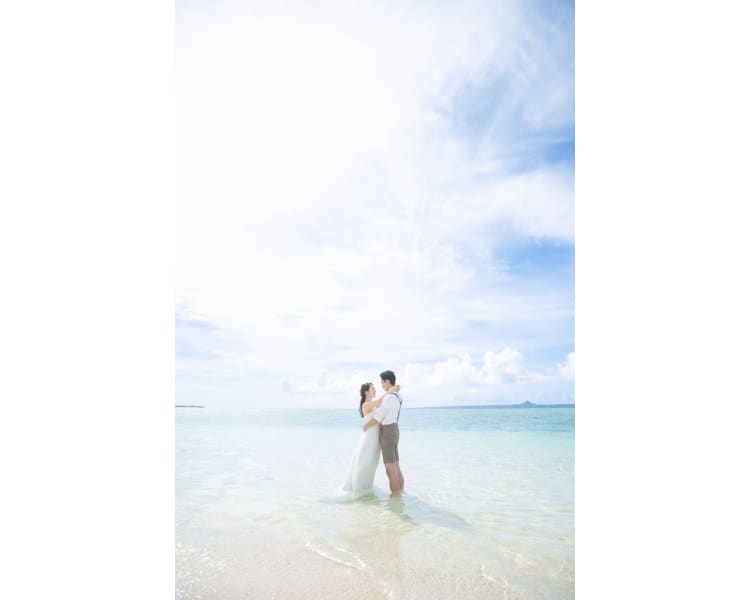 美しい沖縄の海と空をバックに。ウェルカムボードや結婚報告用の一枚にも
