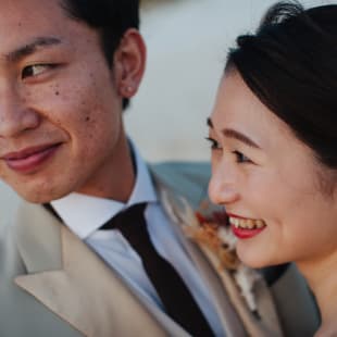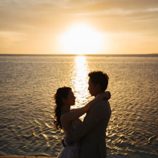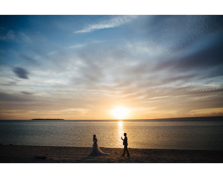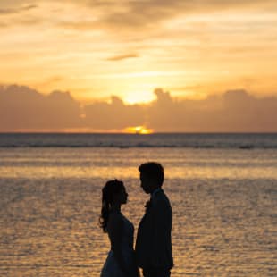 夕日をバックにしたお二人のシルエットが、最高にロマンチック