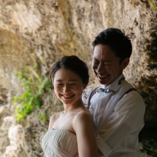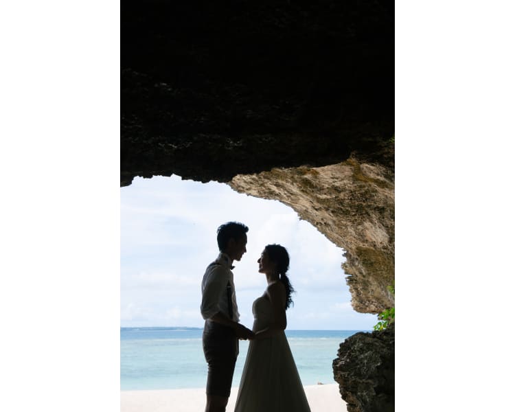 瀬底ビーチにある洞窟での一枚。シルエットショットがロマンチックです