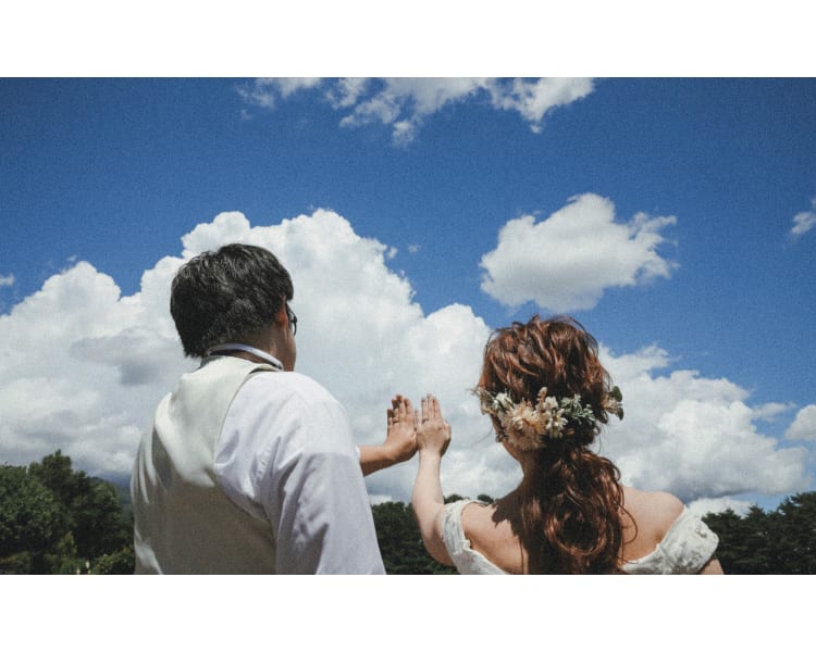 さわやかな軽井沢の靑空に、お二人の結婚指輪を重ねて